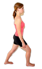 - Standing in a stride stance, lunge onto the front leg keeping the back leg straight and heel down.