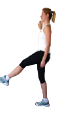 - In standing, gently kick the leg forward until you feel a pull into the back of the leg.