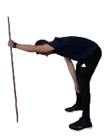 - Holding on to a stick or bench, bend forward at the hips until you feel a stretch through the shoulder or chest.