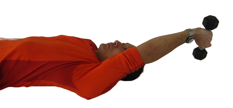 - Lie on back holding onto light weight to stretch shoulder as shown in picture.