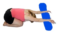- From the hands and knees position, sit the bottom back onto the heels with the arms outstretched, resting on the roller